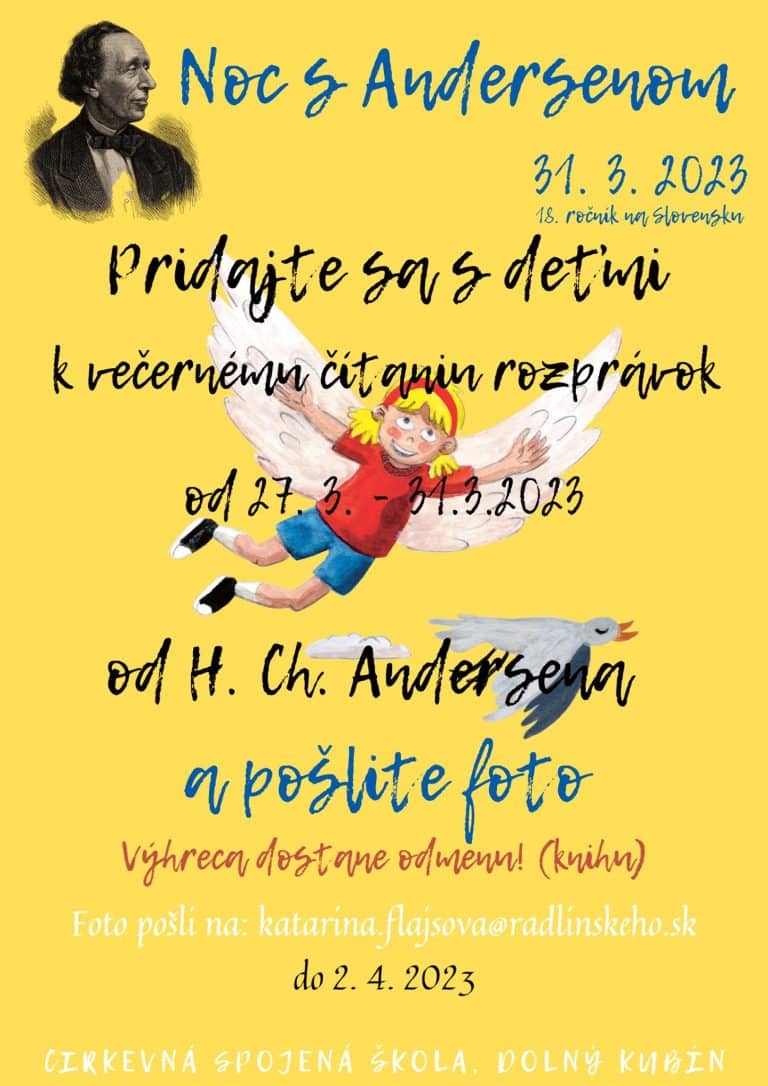 Aj tento rok sa v škole zapájame do medzinárodnej aktivity Noc s Andersenom. Pripojte sa k nám čítaním rozprávok od Andersena od 27.3. – 31.3.