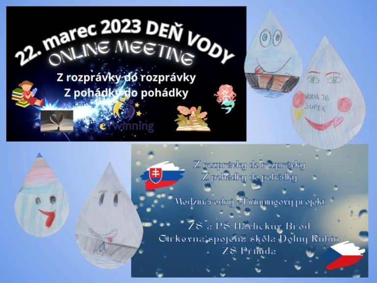 23. 3. 2023 sa žiaci z 1.A a 4.A triedy stretli s eTwinningovými kamarátmi na online meetingu zorganizovanému ku Svetovému dňu vody. Naraz, ale každý