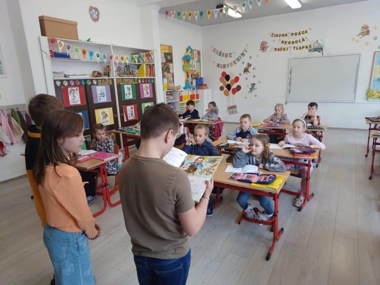 Marec- mesiac knihy sme na prvom stupni odštartovali Týždňom hlasného čítania. Tretiaci a štvrtáci chodili čítať prvákom a druhákom. Vybrali si texty našich aj