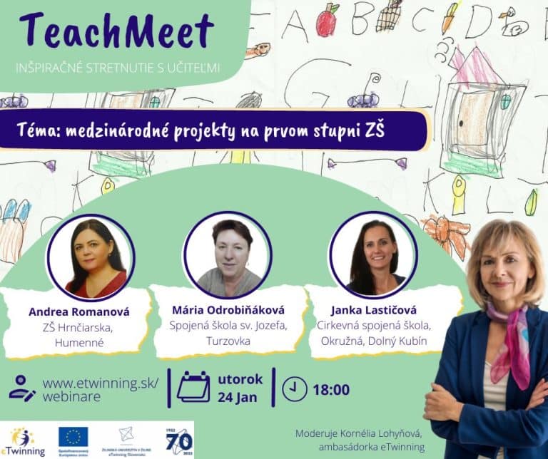 👥 Pozývame vás na ďalší zo série webinárov TeachMEET – tento raz s pani učiteľkami z 1. stupňa ZŠ, ktoré vyhrali v Národnej súťaži eTwinning