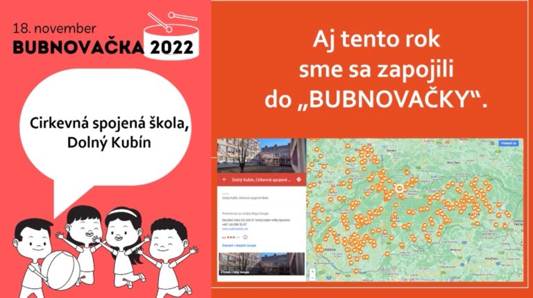V piatok, 18. 11. 2022 sa naša CSŠ zapojila do slovensko-českého podujatia Bubnovačka 2022. Pripomenuli sme si, aký dôležitý je hlas detí. Mgr. K. Flajsová