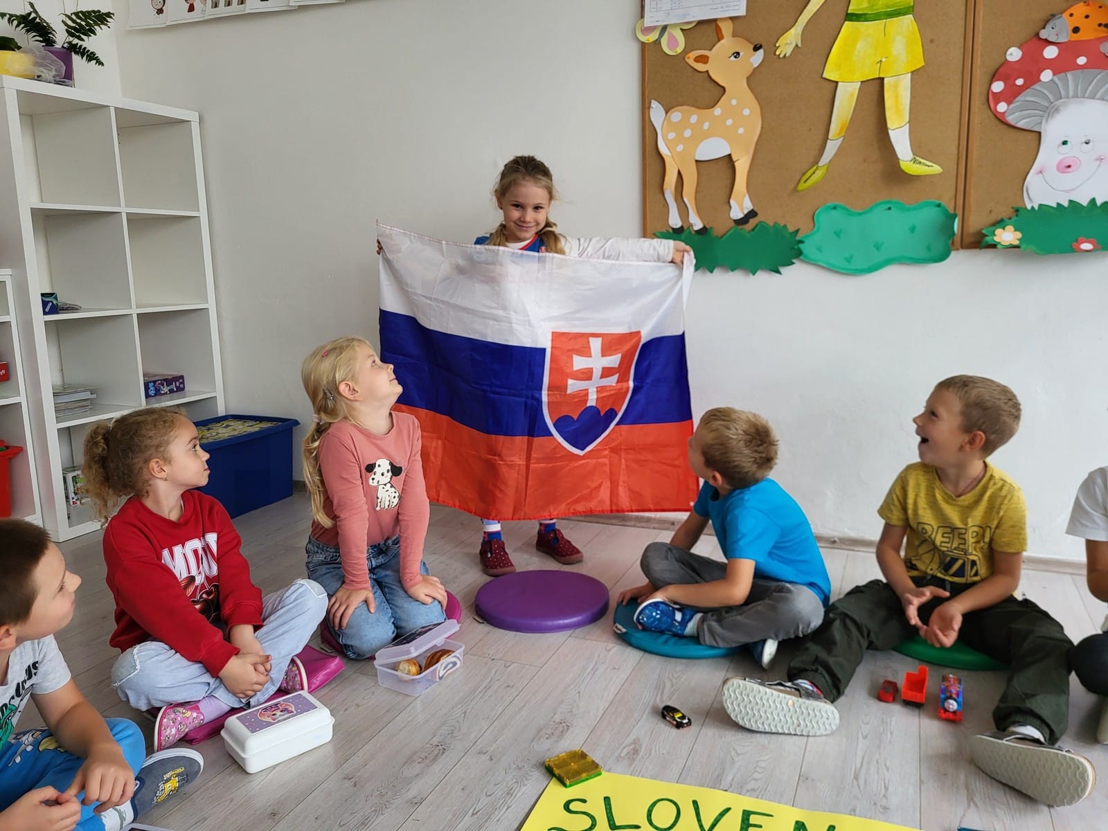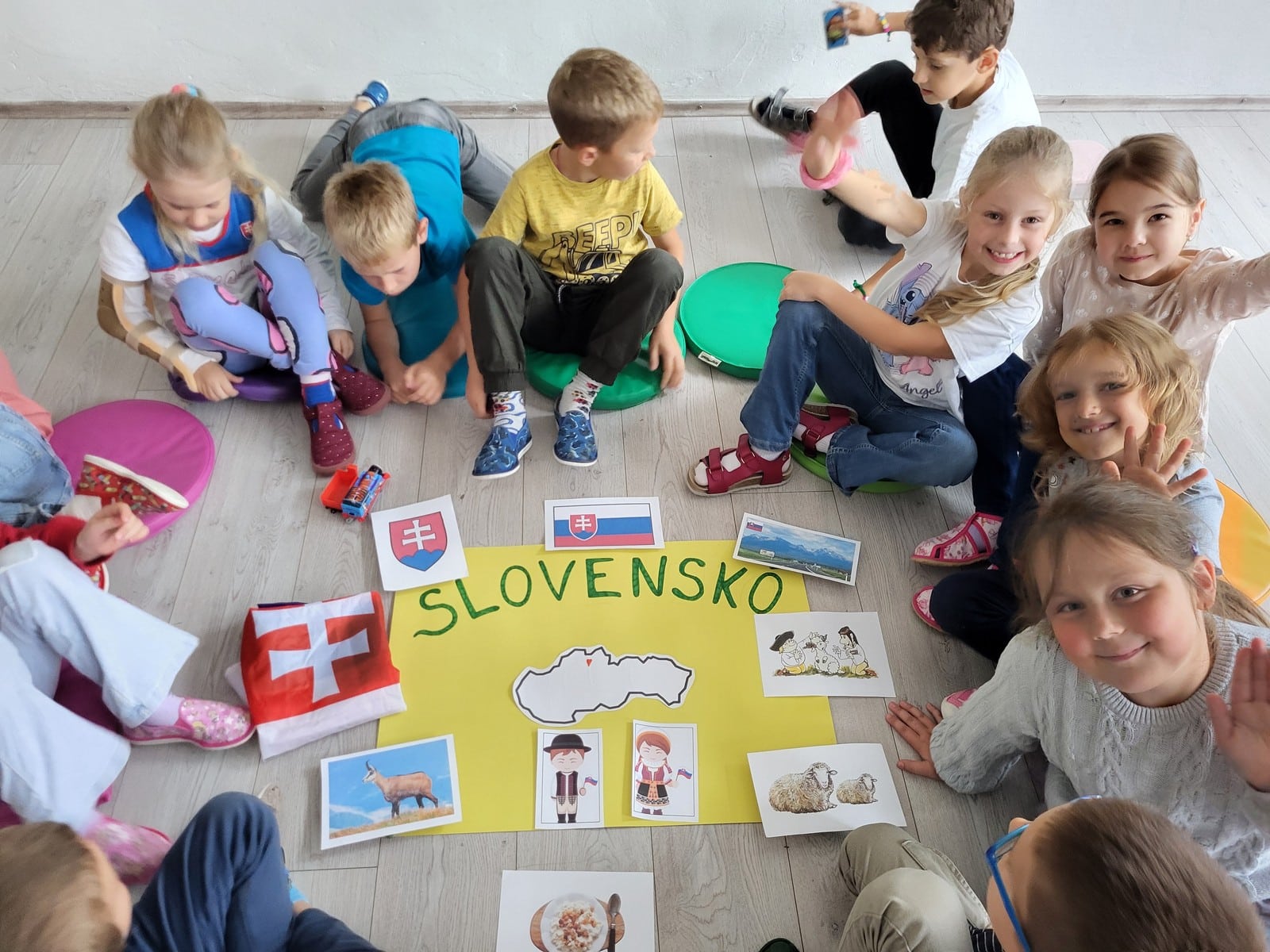 Svoje poznatky potom deti pretavili do tvorby pojmovej mapy. Ich úlohou bolo vybrať spomedzi viacerých obrázkov tie, ktoré patria k Slovensku. A ako im to išlo? Perfektne!