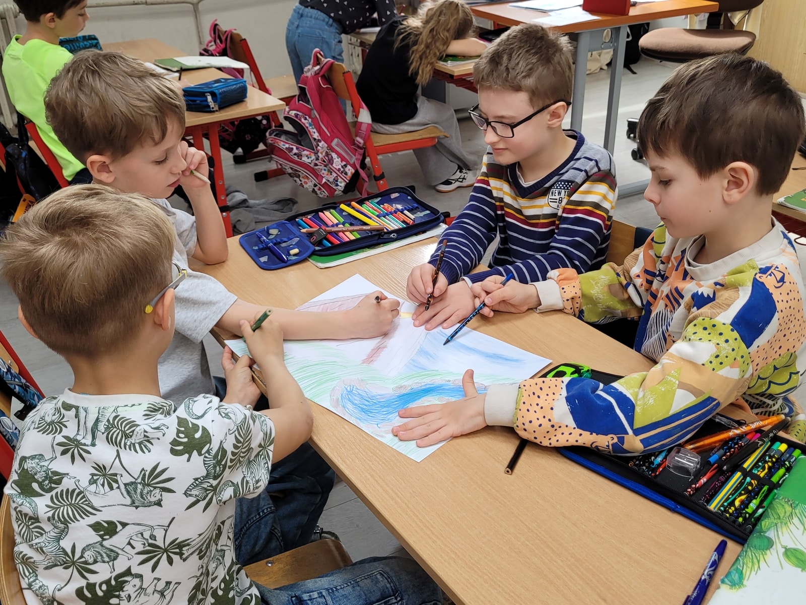 učitelia a žiaci prvého stupňa