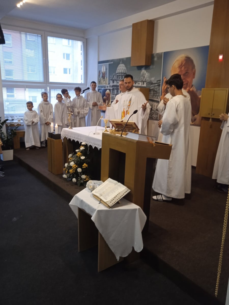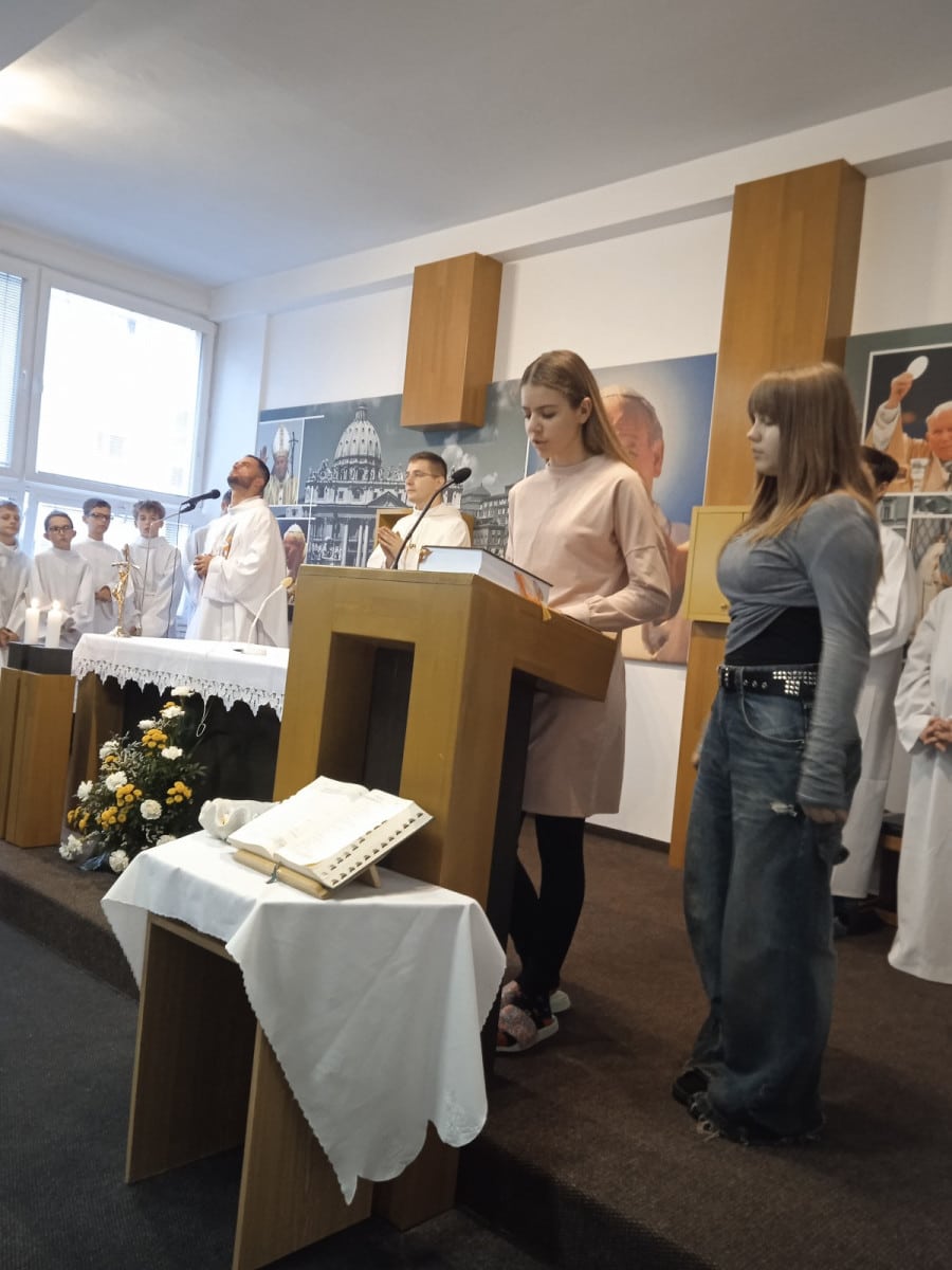 Dnes sa v našej Cirkevnej spojenej škole v Dolnom Kubíne, konala slávnostná odpustová sv. omša, ako spomienku na patróna našej kaplnky, sv. Jána Pavla II. Svätú omšu celebroval a v homílii sa prihovoril dp. Filip Zjara spolu s p. dekanom Michalom Janigom a p. kaplánom Dominikom Martinekom. Ďakujeme! 🫶
